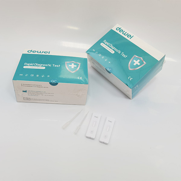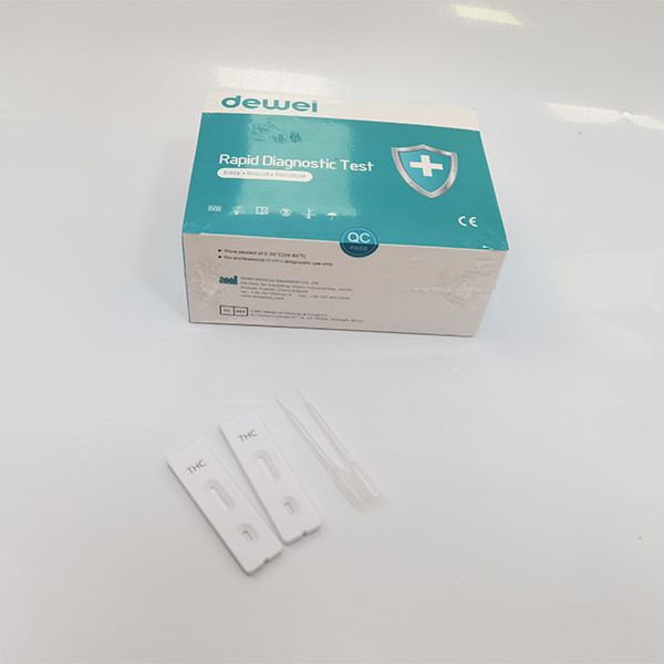 La prova rapida della marijuana (THC) è un dosagggio immunologico competitivo che è usato per schermare per la presenza di marijuana (THC) e di metaboliti in urina. È dispositivo assorbente cromatografico in cui, droghe all'interno di un campione di urina, in modo competitivo combinato ad un numero limitato delle sedi del legame coniugate monoclonali dell'anticorpo della droga (topo).