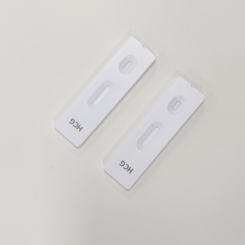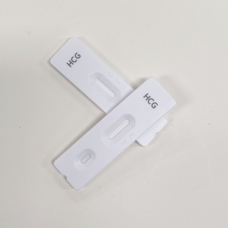 L' hCG Rapid Test rileva la gonadotropina corionica umana attraverso l' interpretazione visiva dello sviluppo del colore sulla striscia.Gli anticorpi anti-hCG sono immobilizzati sulla regione di prova della membrana e gli anticorpi anti-topo sulla regione di controllo.